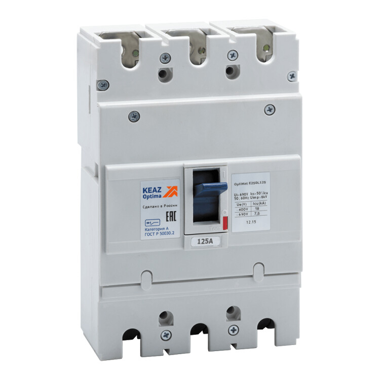 Оптимальность характеристик OptiMat E реализуется в эффективных защитах от коротких замыканий и токов перегрузки всего двумя типоразмерами - OptiMat E100 РЕГ– от 16А до 100АOptiMat E250 РЕГ– от 125A до 250А. Предельная коммутационная способность (ПКС) автоматических выключателей от 10 кА при 400В переменного тока частотой 50/60 Гц является нужным значением для большинства объектов. Преимущества - совместное применение с модульной аппаратурой за счет одинаковой глубины установки и синхронизации защитных характеристик дает возможность комплексного удешевления проектов электроснабжения, удобство монтажа выключателей в любом пространственном положении, как на монтажную панель, так и на Din-рейку с помощью адаптера, возможность подвода питания к выводам с любой стороны, пригодность к разъединению и наличие блокировок обеспечивают наибольшую безопасность при обслуживании объектов, температура эксплуатации от –60 до +40 градусов по Цельсию, соответствующая российским условиям (ОМ4)