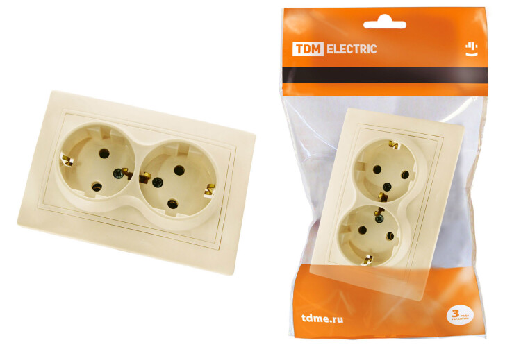 Розетка двойная с заземлением 16А 250В слоновая кость "Таймыр" TDM применяется для: