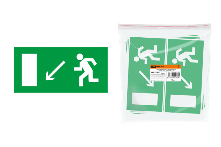 Знак безопасности "Направление к эвакуационному выходу налево вниз" предназначен для зрительного восприятия информации в целях обеспечения безопасности.