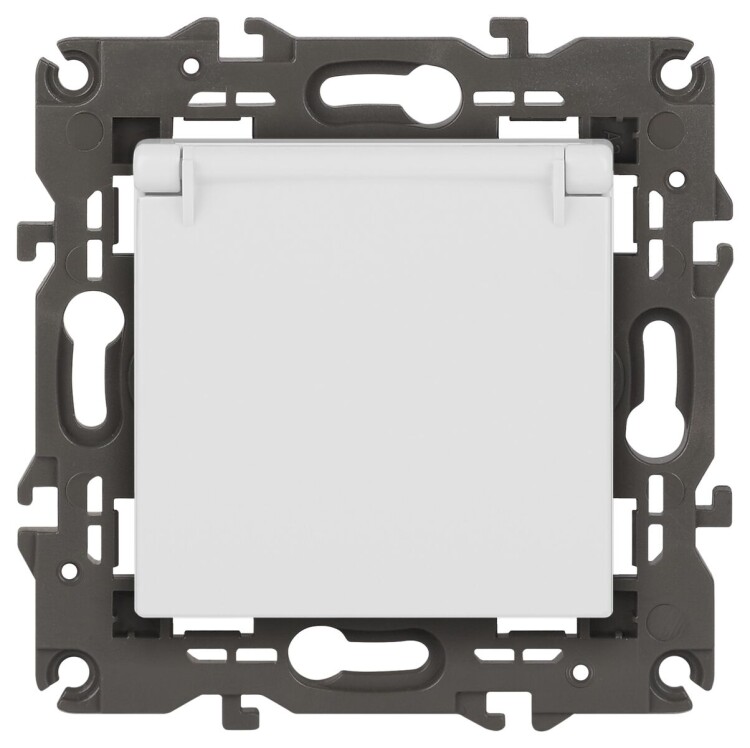 Розетка с заземлением шторки крышка Эра Elegance белый 14-2103-01. Оснащёна автоматическими клеммами для надёжной фиксации жил кабеля в механизме. Рамки приобретаются отдельно. Рамки Эра Elegance ПЛАСТИК: 1 пост 14-5001-хх, 2 поста 14-5002-хх, 3 поста 14-5003-хх, 4 поста 14-5004-хх, 5 постов 14-5005-хх; СТЕКЛО: 1 пост 14-5101-хх, 2 поста 14-5102-хх, 3 поста 14-5103-хх, 4 поста 14-5104-хх; МЕТАЛЛ: 1 пост 14-5201-хх, 2 поста 14-5202-хх, 3 поста 14-5203-хх, 4 поста 14-5204-хх; ДЕРЕВО: 1 пост 14-5301-хх, 2 поста 14-5302-хх, 3 поста 14-5303-хх, 4 поста 14-5304-хх (хх - код цвета: 00-прозрачный, 01-белый, белёный дуб, 02-слоновая кость, 03-алюминий, 04-шампань, 05-чёрный, чёрное дерево, 07-ясень, 09-дуб, 10-венге, 11-клён, 14-медь, 21-жёлтый, 22-оранжевый, 23-красный, 25-бордо, 26-лайм, 27-зелёный, 28-голубой, 29-синий, 30-розовый, 31-мокко, 32-серый, 41-сталь, 42-титан).