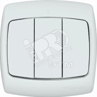 Выключатель трёхклавишный Schneider Electric РОНДО (скрытой установки, цвет белый) предназначен для сетей до 250В, на ток до 10А. Идеально подходит для ванной комнаты и других помещений с повышенным уровнем пыли и влаги. Серебряные контакты обеспечивают высокую надежность. Сделано в России.