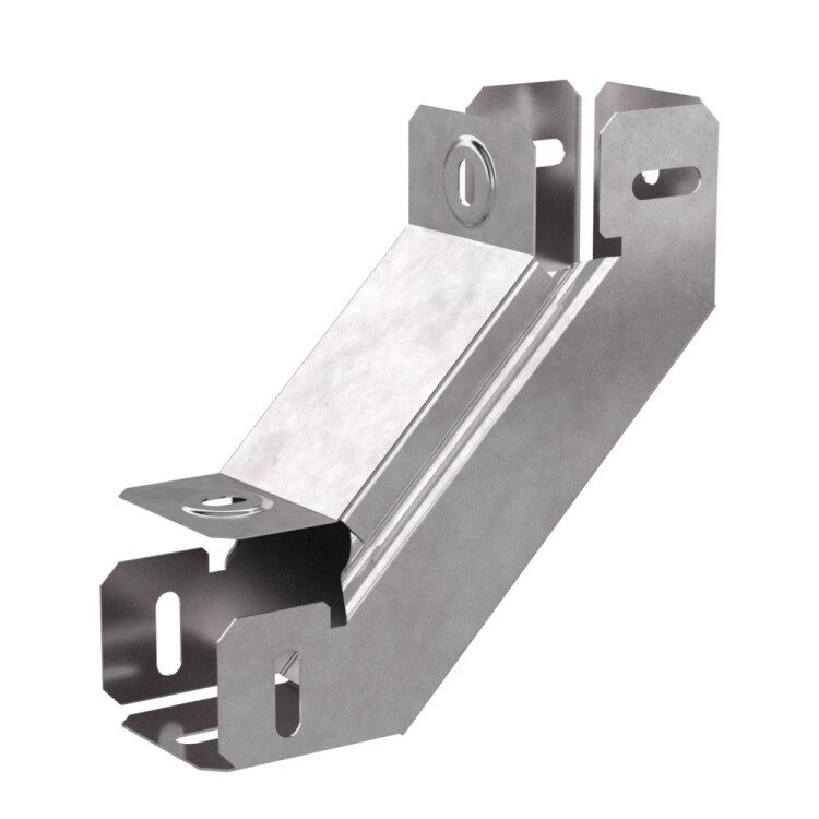 Аксессуары изготовленные из стали с защитным покрытием по методу Сендзимира – это изделия, на которых защитное цинковое покрытие было нанесено на листовую сталь перед изготовлением. Толщина защитного покрытия варьируется от 10 до 22мкм. Климатическое исполнение изделий УХЛ2, что предусматривают эксплуатацию в помещении и под навесом, при температуре эксплуатации от -80 до +150°С. Угол вертикальный внутренний 90 градусов предназначен для подъема кабельных трасс на 90 градусов, для перфорированных и глухих лотков. В комплект входит крышка.