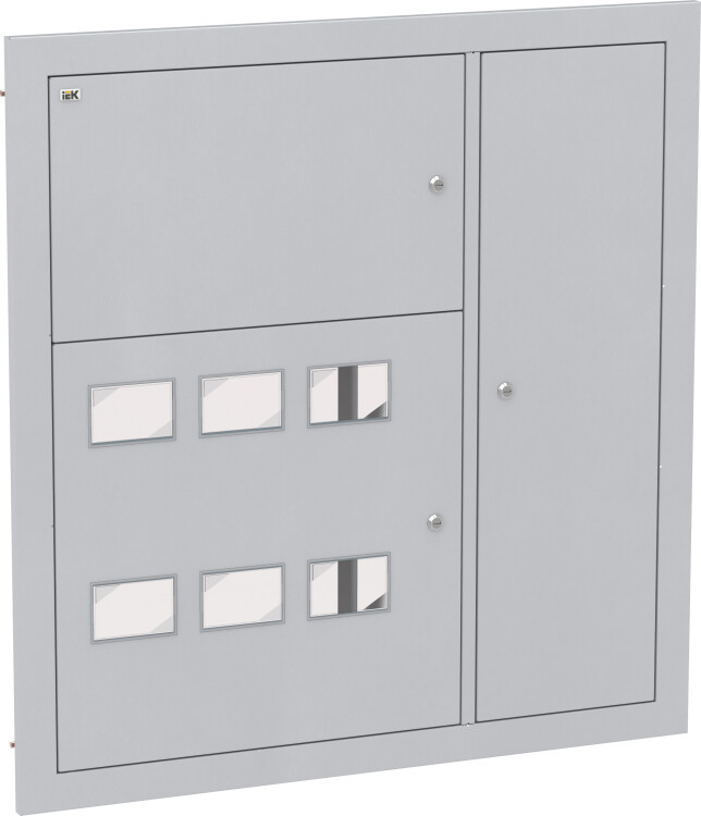 В вводно-учетном и распределительном отсеках в корпусах ЩЭ-Х-1 размещены перфорированные планки для крепления счетчиков (по количеству квартир), в корпусах ЩЭ-Х-6 установлена съемная монтажная панель. В вводно-учетном и распределительном отсеках размещены перфорированные планки для крепления счетчиков (по количеству квартир). Предусмотрена возможность установки в этом же отсеке аппарата отключения магистральной линии.