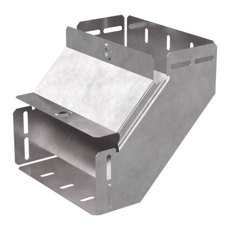 Аксессуары изготовленные из стали с защитным покрытием по методу Сендзимира – это изделия, на которых защитное цинковое покрытие было нанесено на листовую сталь перед изготовлением. Толщина защитного покрытия варьируется от 10 до 22мкм. Климатическое исполнение изделий УХЛ2, что предусматривают эксплуатацию в помещении и под навесом, при температуре эксплуатации от -80 до +150°С. Угол вертикальный внутренний 90 градусов предназначен для подъема кабельных трасс на 90 градусов, для перфорированных и глухих лотков. В комплект входит крышка.