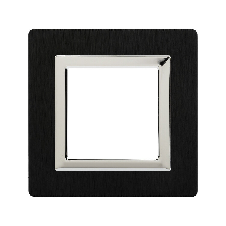 Черная рамка из алюминия для настенного монтажа. Назначение – декоративное оформление серии электроустановочных изделий"Avanti", монтаж в стену на каркас ЭУИ Avanti (код 4400802). Дизайн разработан B. Dall’Ecco. Материал – алюминий. Фактура – браш. Кол-во модулей – 2.
