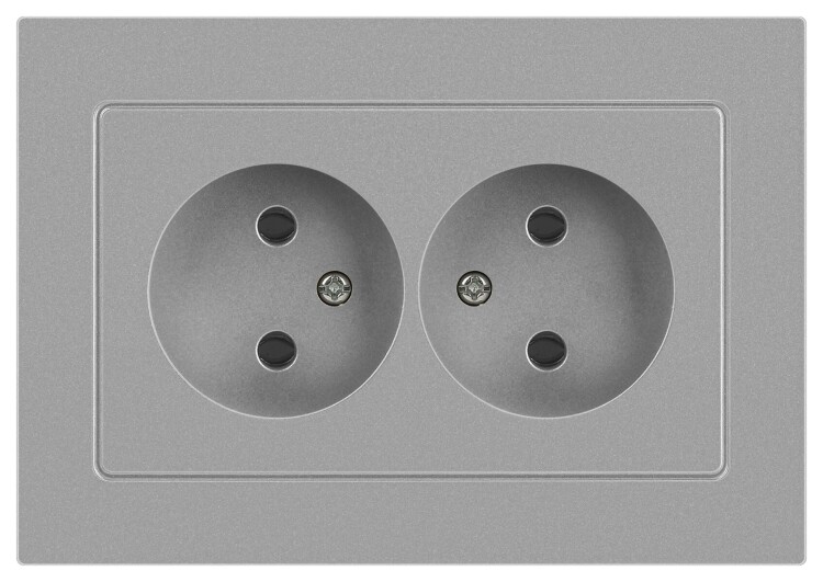 <p>Розетка двойная без заземления серии Intro Accent скрытой установки цвет алюминий 6-204-03. Номинальные характеристики 16А 250В. Выполнена из негорючего термопласта, оснащена винтовыми клеммами. Парные клеммы обеспечивают соединение шлейфом. Монтаж в подрозетник производится и на лапки, и на винты.</p>