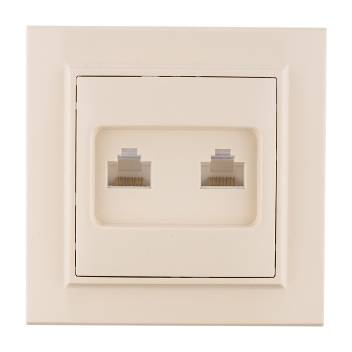 Розетка двойная компьютерная RJ45+RJ45 EKF серии Минск станет отличным решением для квартиры и загородного дома при подключении устройств к сети Интернет. Компактный механизм упрощает монтаж изделия. Зафиксированные распорные лапки надежно фиксируют устройство в монтажной коробке.