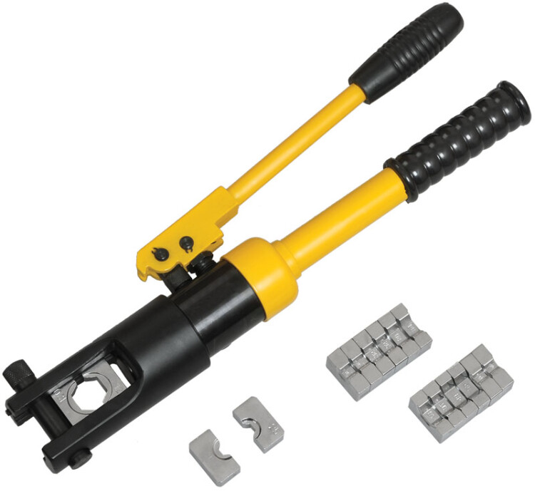 Гидравлические прессы позволяют создавать механические соединения типа кабельная жила-гильза или кабельная жила-наконечник с помощью механической опрессовки. Прессы снабжены сменными матрицами, предназначенными для различных сечений жил. Гидравлические прессы значительно облегчают процесс опрессовки, так как требуют применение меньших усилий, чем механи ческие прессы.
