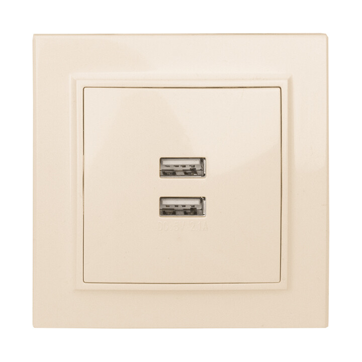 Минск Розетка USB 2-местная СП 2,1А бежевая EKF