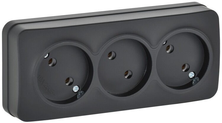 GLORY Розетка 3-местная о/у без з/к и з/ш 10А РС23-2-ХЧм черный матовый IEK