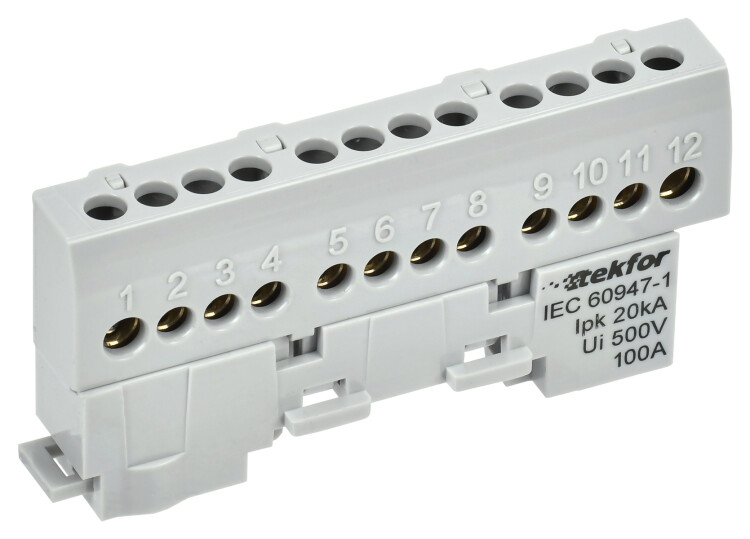 Контактная часть шин выполнена из латуни, прижимные винты из оцинкованной стали, изолятор из негорючего пластика.