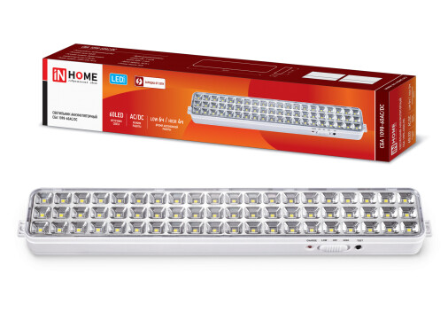 Аккумуляторные светодиодные светильники серии СБА ТМ IN HOME обеспечат отличное освещение в экстренном случае, когда из-за перебоев в электроснабжении или возникновения чрезвычайной аварийной ситуации отключены основные источники света. Данные светильники можно устанавливать стационарно или использовать в качестве переносного источника света. Рекомендованы для эксплуатации в общественных, производственных, бытовых, подсобных и других помещениях при температуре от +1 до +40°C. Корпус светильника изготовлен из прочного ABC-пластика, материал рассеивателя – негорючий поликарбонат. Аварийный светильник может работать как от сети, так и от собственной батареи, сохраняя работоспособность длительное время – от 3 до 8 часов в зависимости от модели. Номинальный срок службы – 30.000 часов. Гарантия – 2 года.