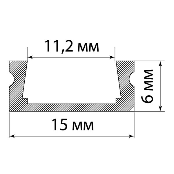 Алюминиевый профиль накладной черный 1506 (2 м), матовый рассеиватель, 2 заглушки, 3 крепежа TDM
