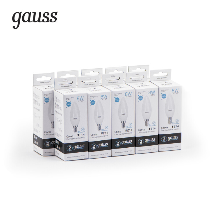 Лампа Gauss LED Elementary, Candle, мощность 8W, цоколь E14, цветовая температура 4100K
