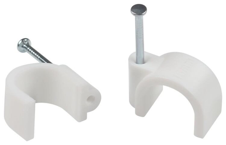В ассортименте 2 типа изделий: для круглого кабеля и для плоского кабеля. Поставляется в комплекте с уже вставленным гвоздем.</p>