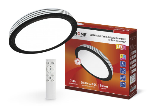 Строгая черно-белая гамма и правильные геометрические линии светильника AFINA в сочетании с мерцающим рассеивателем сделают его интересным акцентом в нестандартном интерьере. Пульт дистанционного управления позволяет изменять цветовую температуру от уютного теплого (3000К) до холодного белого света (6500K) или приглушить яркость освещения до режима ночника (5% освещенности). Холодный дневной свет с оздает яркое контрастное освещение, удобное для работы с мелкими предметами и деталями. Теплый свет добавит интерьеру уюта и будет способствовать расслаблению в период вечернего отдыха. Номинальный срок службы – не менее 30 000 часов, гарантия 2 года.