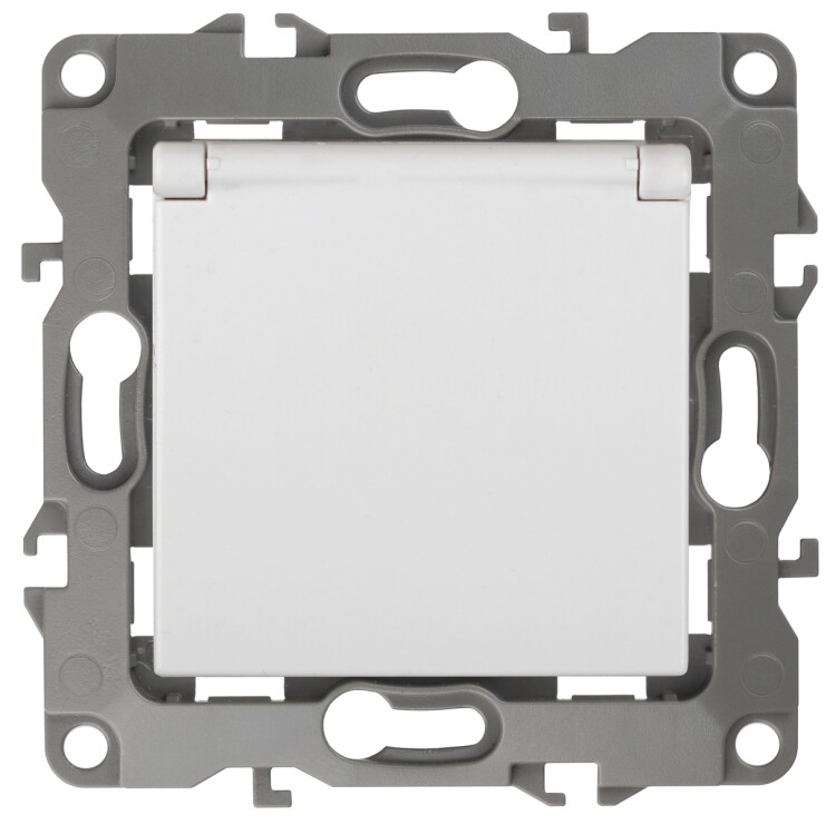Розетка 2P+E Schuko со шторками с крышкой, 16А-250В, б.л., Эра12, белый