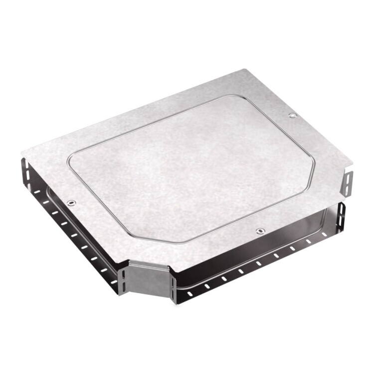 Аксессуары изготовленные из стали с защитным покрытием по методу Сендзимира – это изделия, на которых защитное цинковое покрытие было нанесено на листовую сталь перед изготовлением. Толщина защитного покрытия варьируется от 10 до 22мкм. Климатическое исполнение изделий УХЛ2, что предусматривают эксплуатацию в помещении и под навесом, при температуре эксплуатации от -80 до +150°С. Т-образный ответвитель предназначен для разветвления кабельных трасс в горизонтальном направлении,для перфорированных и глухих лотков. В комплект входит крышка.