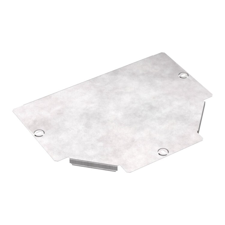 Крышки аксессуаров изготовленные из стали с защитным покрытием по методу Сендзимира – это изделия, на которых защитное цинковое покрытие было нанесено на листовую сталь перед изготовлением. Толщина защитного покрытия варьируется от 10 до 22мкм. Климатическое исполнение изделий УХЛ2, что предусматривают эксплуатацию в помещении и под навесом, при температуре эксплуатации от -80 до +150°С. Крышка ответвителя Т-образного предназначена для обеспечения дополнительной защиты кабельной продукции от механических повреждений, пыли и влаги. Совместима с крышками лотков. Крышка фиксируется на защелках, по необходимости соединяется винтами с крышками лотка.