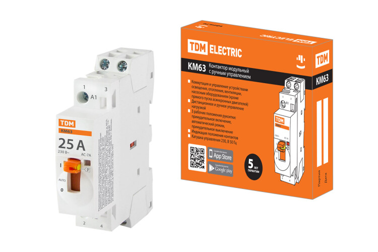 В автоматическом режиме контактор работает как обычный контактор КМ63. В ручном режиме можно вручную включать или выключать силовую цепь, в этом режиме КМ63 с ручным управлением заменяет контактор КМ63 с внешними органами управления - кнопками пуск-стоп.