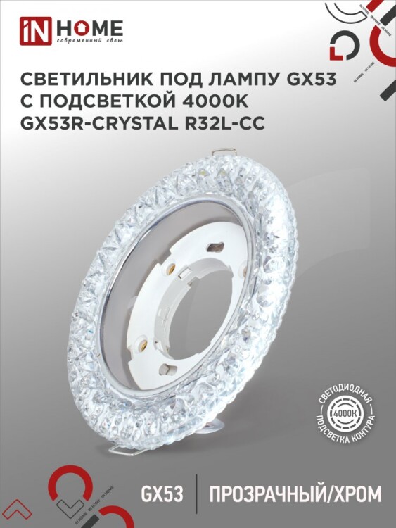 Встраиваемые светильники линейки GX53R-crystal под лампу GX53 с подсветкой - это современнное решение, сочетающее функциональность точечного и элегантность интерьерного светильников благодаря встроенной светодиодной подсветке и декорированному стеклянному корпусу, который дополнительно отражает и рассеивает световые лучи.