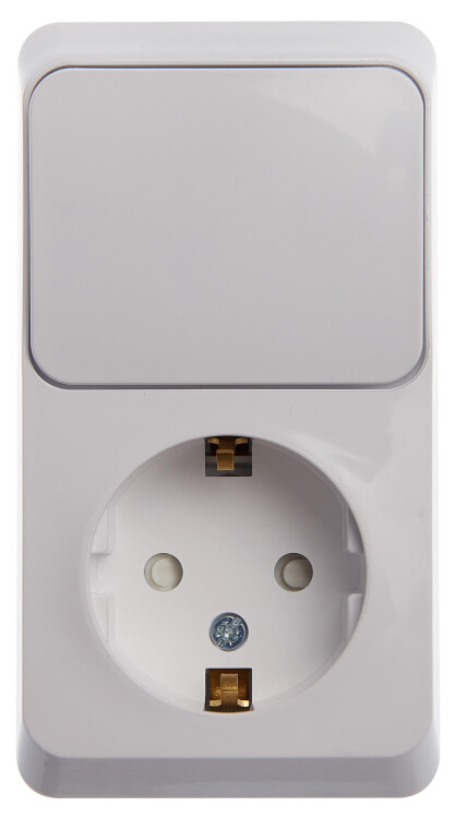 ЭТЮД О/У БЛОК: РОЗЕТКА с заземл. со шт. + ВЫКЛЮЧАТЕЛЬ 1-клавиш., БЕЛЫЙ, Россия
