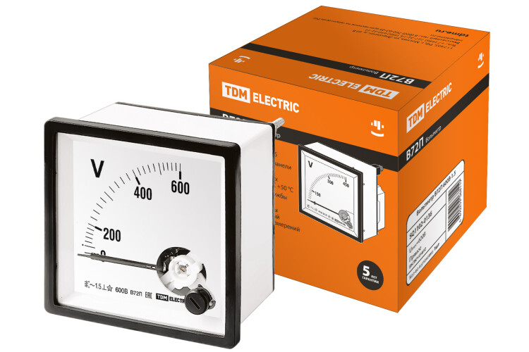 Назначение: Для измерения силы тока и напряжения в однофазных электрических цепях переменного тока. Применение: В низковольтных комплектных устройствах распределительных электрических сетей жилых, общественных и производственных объектах. Преимущества: Все приборы внесены в государственный реестр средств измерений и имеют свидетельство типа CN.C.34.004.A №45415. Самозатухающий пластик обеспечивает пожаро- и электробезопасность. Для А72, А96, В72, В96, внешние присоединительные зажимы закрываются защитной прозрачной крышкой, обеспечивающей электробезопасность. Полностью совместимы с трансформаторами тока ТТН TDM ELECTRIC. Все приборы поверенные и имеют соответствующие штампы на корпусе и в паспорте. Для амперметров А72 в наличии сменные шкалы, что позволяет оптимизировать складские запасы по данной серии. Конструкция: Материалы: Корпус из негорючего самозатухающего пластика. Комплектация: Упаковка: