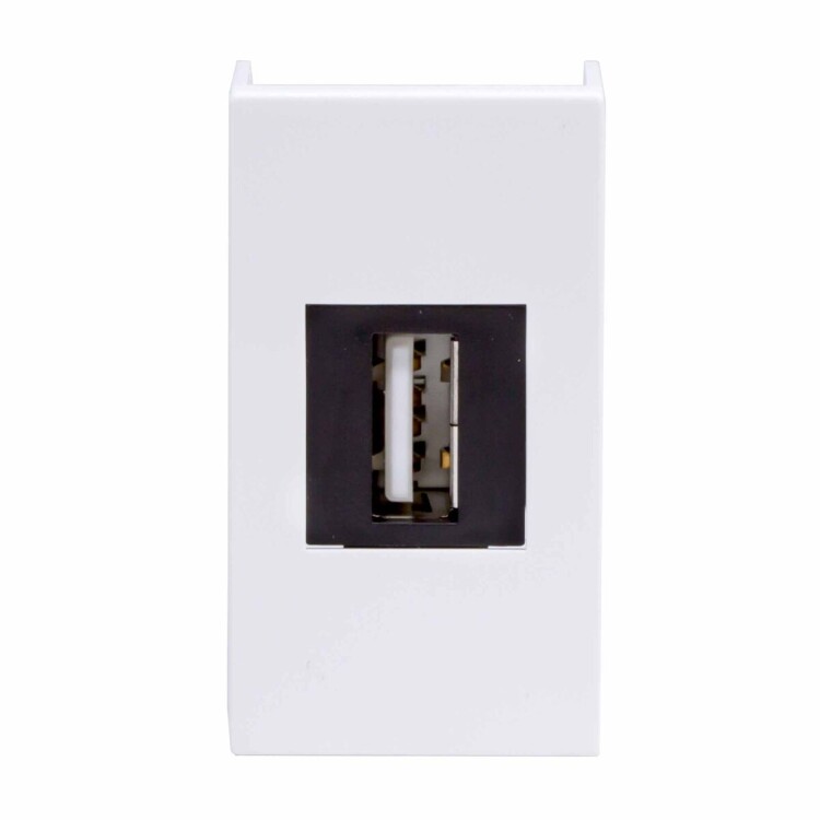 Мультимедийная розетка USB с 1 разъемом, 1 модуль. Назначение- подсоединение необходимого кабеля к телевизору, плазменной панели, проектору, компьютеру и прочей оргтехнике. Характеристики- проходной разъем типа А-А или ‘мама-мама‘,комплектуются одномодульным гнездом,для подключения необходимой техники потребуется соответствующий кабель USB. USB 2.0. Тип разъема- А-А. Установочный размер- 43х43. Цвет- белый