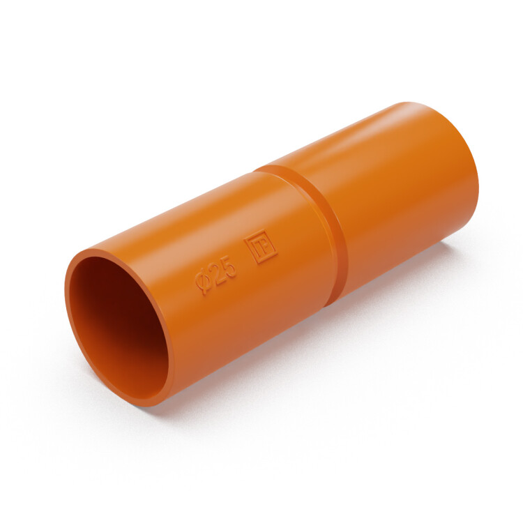 Предназначена для прямолинейного соединения гофрированных труб или гладких труб из пластика, что позволяет придать более эстетичный внешний вид местам соединения. В центре муфты, с внутренней стороны, находится ограничитель. Ассортимент дополняют муфты оранжевого цвета для использования в комплекте с гладкими и гофрированными трубами в таком же цвете.