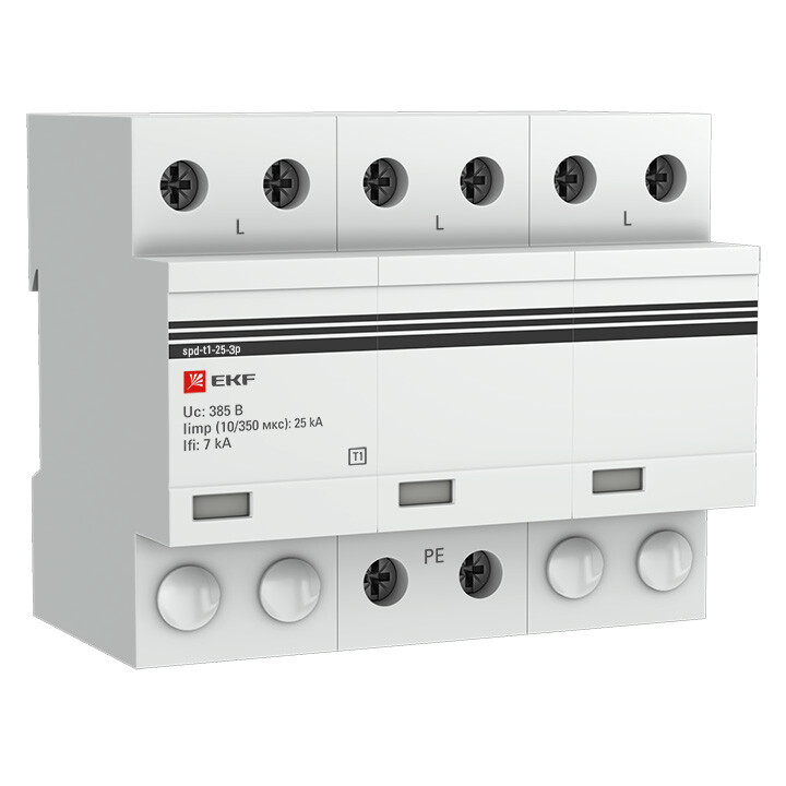 УЗИП Тип 1 (класс 1) применяются для защиты от больших импульсных перенапряжений (удар молнии, мощный бросок напряжения в режиме КЗ). Устанавливаются в местах возможного прямого попадания молнии в ВЛ электропитания или в качестве 1-ой ступени защиты в системе внешней молниезащиты объекта. Испытание и нормирование УЗИП класса I осуществляется импульсным током Iimp – 10/350 мкс, номинальным разрядным током In – 8/20 мкс, импульсным напряжением – 1,2/50 мкс. Устанавливаются УЗИП класса 1 к примеру, в щит учета на опоре, снаружи дома (до счетчика), в главном распределительном щите объекта (ГРЩ) или во вводном-распределительном устройстве (ВРУ).