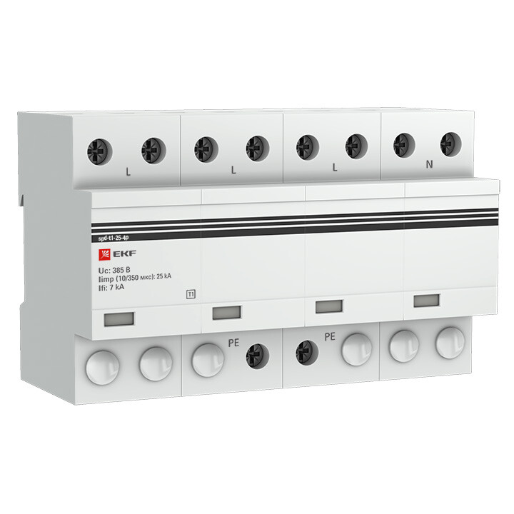 УЗИП Тип 1 (класс 1) применяются для защиты от больших импульсных перенапряжений (удар молнии, мощный бросок напряжения в режиме КЗ). Устанавливаются в местах возможного прямого попадания молнии в ВЛ электропитания или в качестве 1-ой ступени защиты в системе внешней молниезащиты объекта. Испытание и нормирование УЗИП класса I осуществляется импульсным током Iimp – 10/350 мкс, номинальным разрядным током In – 8/20 мкс, импульсным напряжением – 1,2/50 мкс. Устанавливаются УЗИП класса 1 к примеру, в щит учета на опоре, снаружи дома (до счетчика), в главном распределительном щите объекта (ГРЩ) или во вводном-распределительном устройстве (ВРУ).