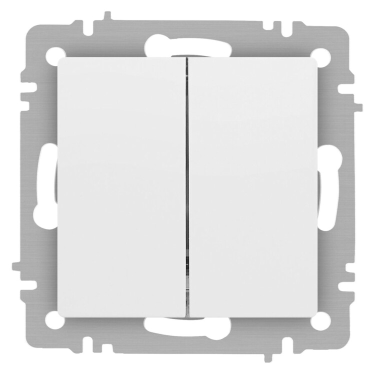 <p>Выключатель 2-клавишный серии Intro Accent скрытой установки механизм цвет белый матовый 6-104-01М. Номинальные характеристики 10А 250В. Выполнен из негорючего термопласта, оснащён винтовыми клеммами. Парные клеммы обеспечивают соединение шлейфом. Монтаж в подрозетник производится и на лапки, и на винты. Рамка приобретается отдельно. В серии представлены рамки до 5 постов: на 1 пост - 6-501-хх, на 2 поста - 6-502-хх, на 3 поста - 6-503-хх, на 6 поста - 4-504-хх, на 5 постов - 6-505-хх (где хх - цветовой код: 01 - белый, 01М - матовый белый, 02 - слоновая кость, 03 - алюминий, 04 - шампань, 05 - антрацит, 06 - перламутр, 07 - графит, 08 - бронза, 09 - титан, 10 - венге, 11 - сосна).</p>
