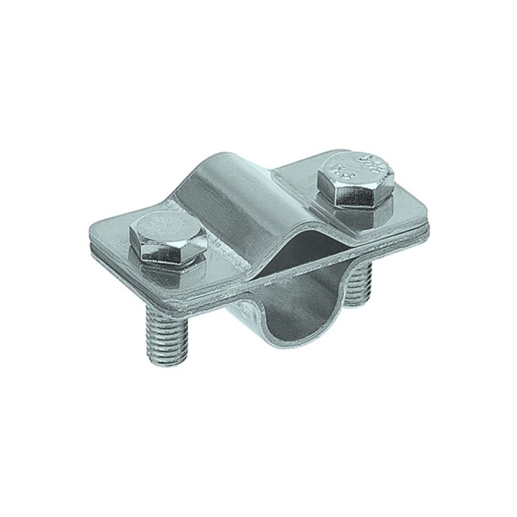 Арт. 90550. Зажим соединительный пруток — стержень 16 мм параллельный, оцинк. Зажим выполнен из оцинкованной стали и используется для соединения в параллельном направлении прутка молниезащитной сетки диаметром 8-10 мм со стрежнем либо молниеприемником диаметром 16 мм. Зажим стягивается болтами М8.