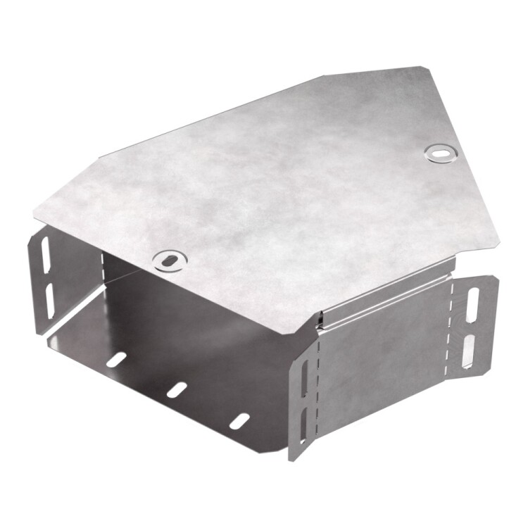 Аксессуары изготовленные из стали с защитным покрытием по методу Сендзимира – это изделия, на которых защитное цинковое покрытие было нанесено на листовую сталь перед изготовлением. Толщина защитного покрытия варьируется от 10 до 22мкм. Климатическое исполнение изделий УХЛ2, что предусматривают эксплуатацию в помещении и под навесом, при температуре эксплуатации от -80 до +150°С. Угол горизонталь ный 45 градусов предназначен для поворота кабельных трасс в горизонтальном направлении на 45 градусов, для перфорированных и глухих лотков. В комплект входит крышка.