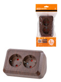 Розетка угловая двойная 2П+3 открытой установки с з/ш IP20 250В 16А бук "Ладога" TDM