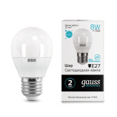 ![]() | 53228 | Gauss | Лампа Gauss Elementary Шар 8W 540lm 4100K Е27 LED 1/10/100 | 4 400 | 4 400 | 145,47 | ||||||