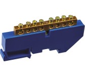 Шина "N" нулевая 6х9мм 10/1 (10 групп/крепеж по центру) с изолятором на DIN-рейку (20 шт/уп) Промрук