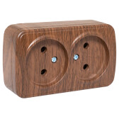 Розетка 2-местная ОП Минск 10А без заземления тёмное дерево EKF