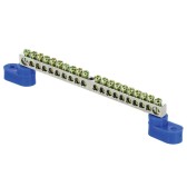 Шина "0" N (6х9мм) 16 отверстий латунь 2 синих угловых изолятора EKF PROxima