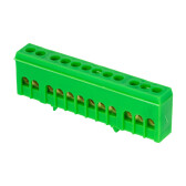 Шина "0" PE (6х9мм) 12 отверстий латунь зеленый изолированный корпус на DIN-рейку розничный стикер E