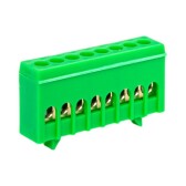 Шина "0" PE (6х9мм) 8 отверстий латунь зеленый изолированный корпус на DIN-рейку розничный стикер EK
