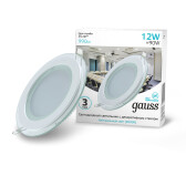 Светильник Gauss Glass круг 12W 990lm 4000K 220-240V IP20 монт ?118 160*35 с дек стеклом LED 1/40