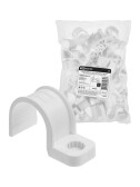 Крепеж-скоба пластиковая односторонняя для прямого монтажа атмосферостойкая белая в п/э d20 мм (50шт/600шт уп/кор) Промрукав