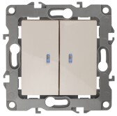 12-1105-02 ЭРА Выключатель двойной с подсветкой, 10АХ-250В, IP20, Эра12, слоновая кость (10/100/3200