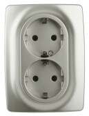 12-2108-15 ЭРА Розетка 2X2P+E Schuko со шторками, 16A-250В, IP20, Эра12, перламутр (10/100/2000)
