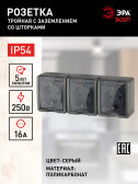 11-2406-03 ЭРА Розетка 3х2P+E IP54, шторки, 16A-250В, ОУ, серый (5/50/800)
