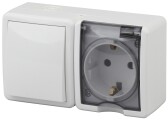 11-7402-01 ЭРА Блок розетка+выключатель двойной IP54, 16A(10AX)-250В, ОУ, Эра Эксперт, белый (8/80/1