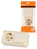 Блок комбинированный выкл. 2-кл. с/п 10А + розетка 2П 10А 250В БКВР IP20 сл. кость "Ладога" TDM