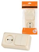 Блок комбинированный выкл. 2-кл. 10А + розетка 2П 10А 250В БКВР IP20 сл. кость "Ладога" TDM