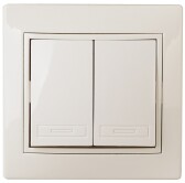Выключатель Intro Plano 1-105-02 двухклавишный с подсветкой, 10А-250В, IP20, СУ, слоновая кость
